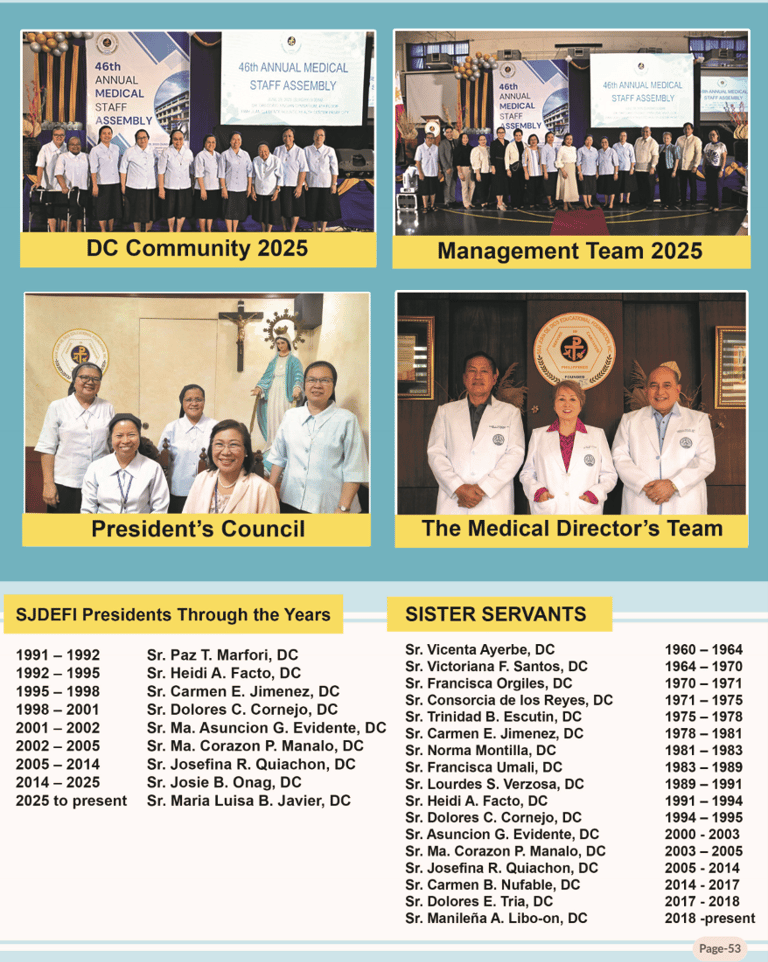 Since 1660, this spirit continues to animate the Daughters of Charity and their lay mission partners, urging all to renew daily their commitment to serving the poor with humility, love, and excellence. This very mission has inspired San Juan de Dios Hospital and College to continuously expand its programs, upgrade its curriculum, and improve its facilities ensuring that the quality of service remains faithful to its Vincentian roots and relevant to the needs of the times.